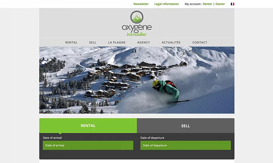 Rendez-vous sur notre site www.oxygene-immobilier.com. Cliquez sur « Location » dans le menu, puis sélectionnez « réservation en ligne » dans le menu déroulant.