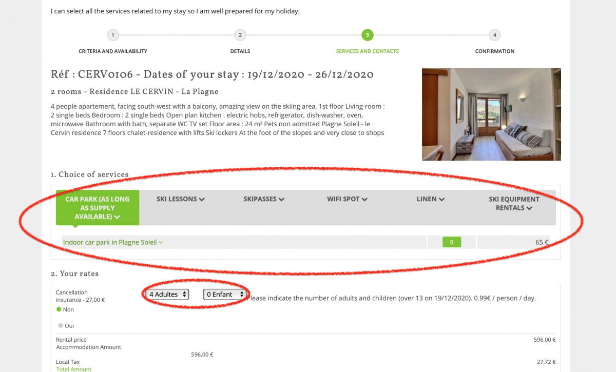 Lorsque vous êtes sur de votre choix, cliquez simplement sur le bouton vert « réserver votre séjour », qui vous amènera à l’étape suivante.