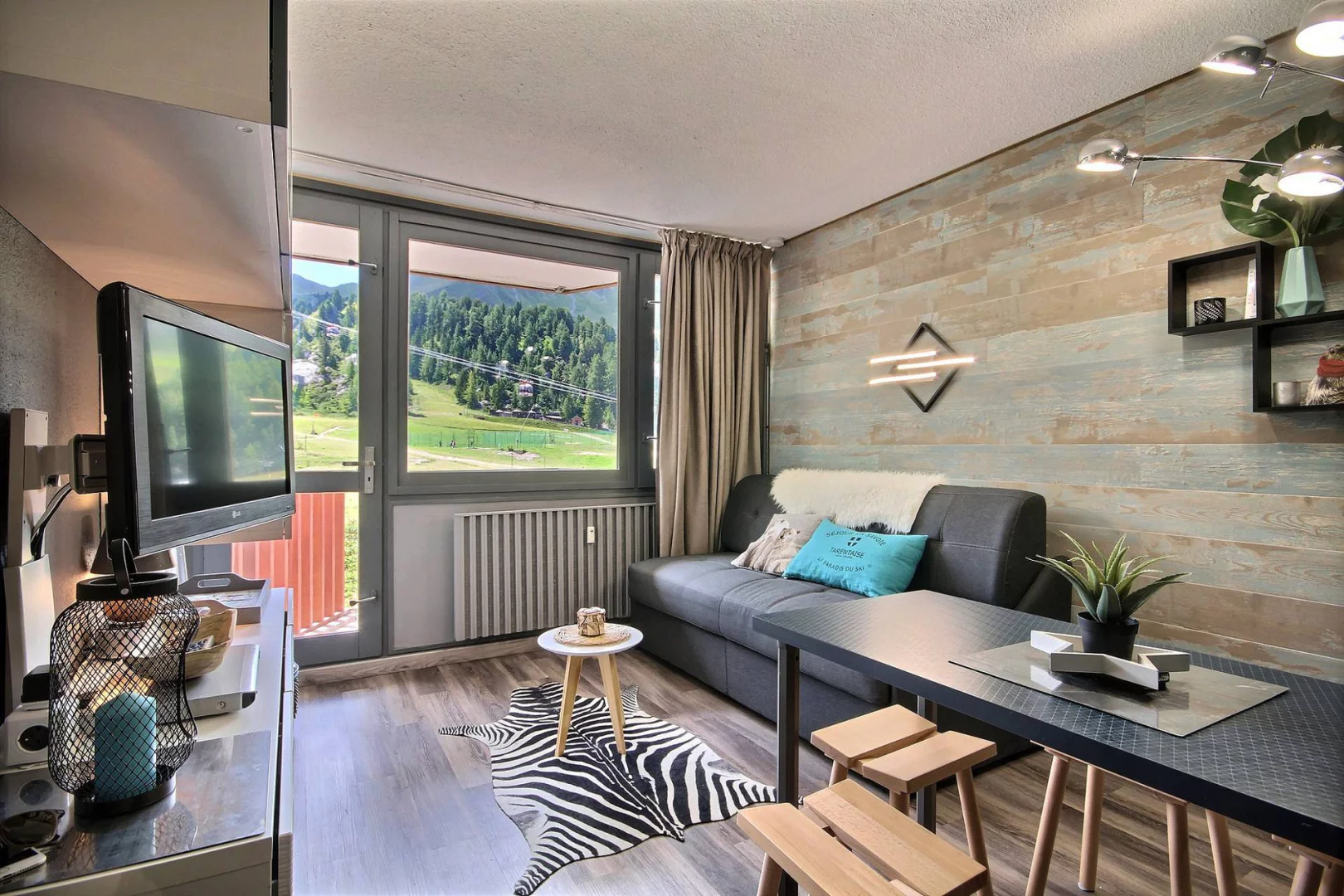 Très beau studio-cabine pour 3/4 personnes refait à neuf, orienté sud (très belle vue pistes) avec balcon, 5ème étage
