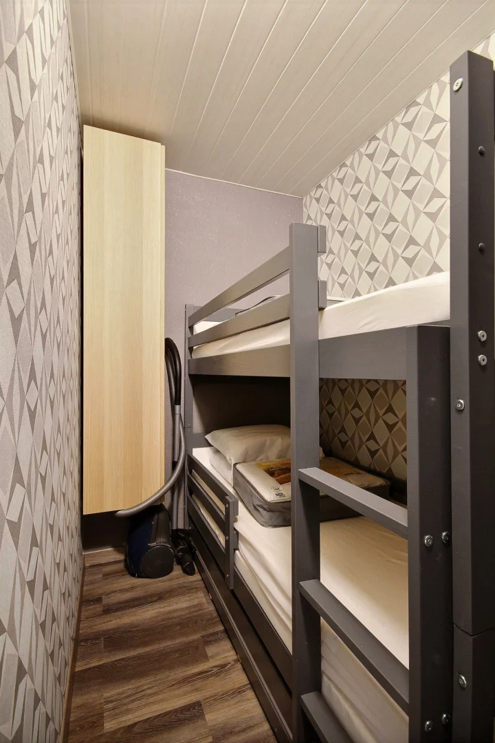 Chambre-cabine séparée par un rideau : 2 lits superposés (80 cm)