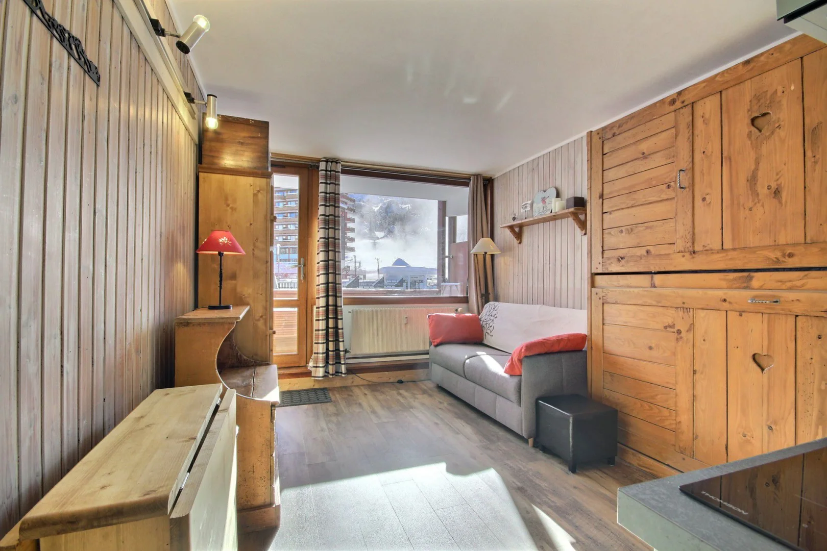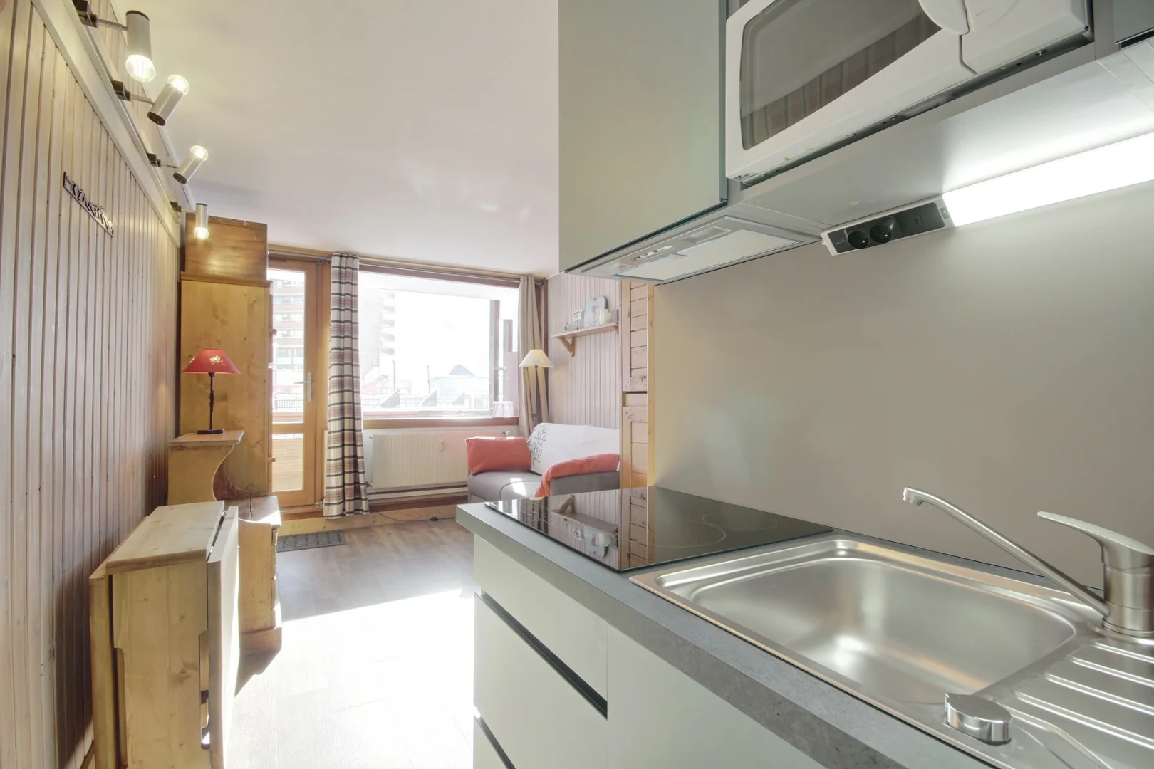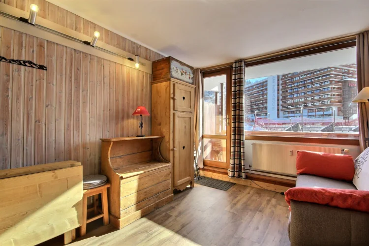 Studio orienté sud, skis aux pieds, relié à la galerie commerciale