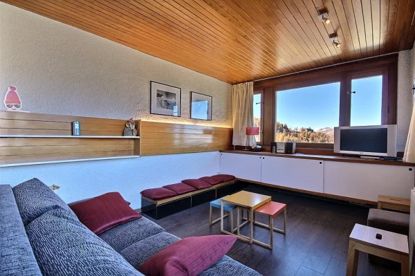 Appartement 2 pièces pour 4 personnes, orienté nord-est avec un balcon (très belle vue sur la station et le Mont-Blanc), 8ème et dernier étage