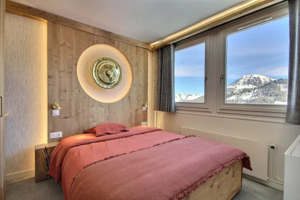 Magnifique appartement entièrement rénové en 2022, équipé pour 6 à 8 personnes, 3 pièces + 1 partie couchage, orienté sud-est avec un très grand balcon d'angle (environ 19 m²), vue splendide sur le domaine skiable et le Mont-Blanc, très ensoleillé, 5ème étage