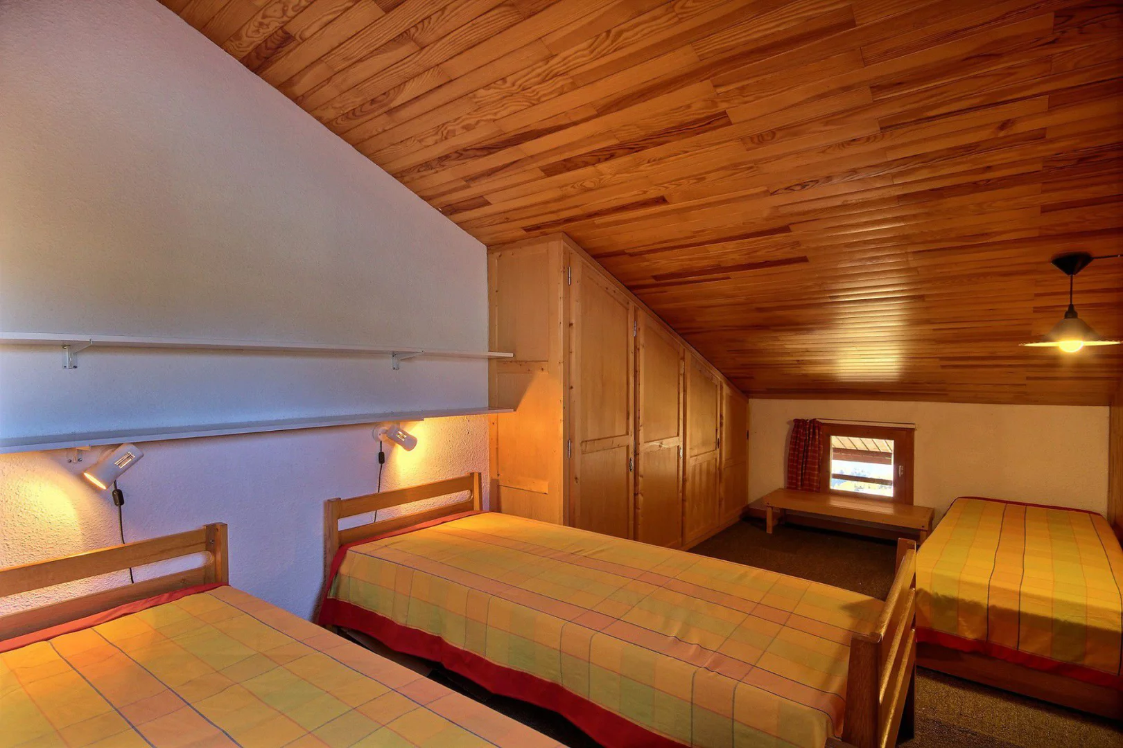 Chambre séparée sur mezzanine : 3 lits d'1 personne (80cm)
