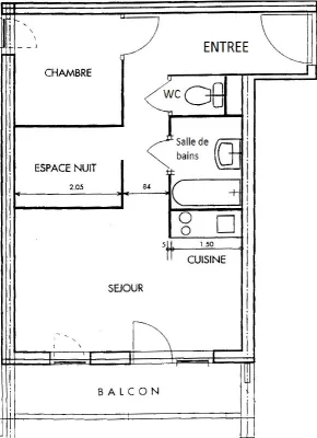 Appartement 2 pièces + cabine pour 4/5 personnes, orienté sud-ouest avec balcon (très belle vue sur les pistes), 3ème étage