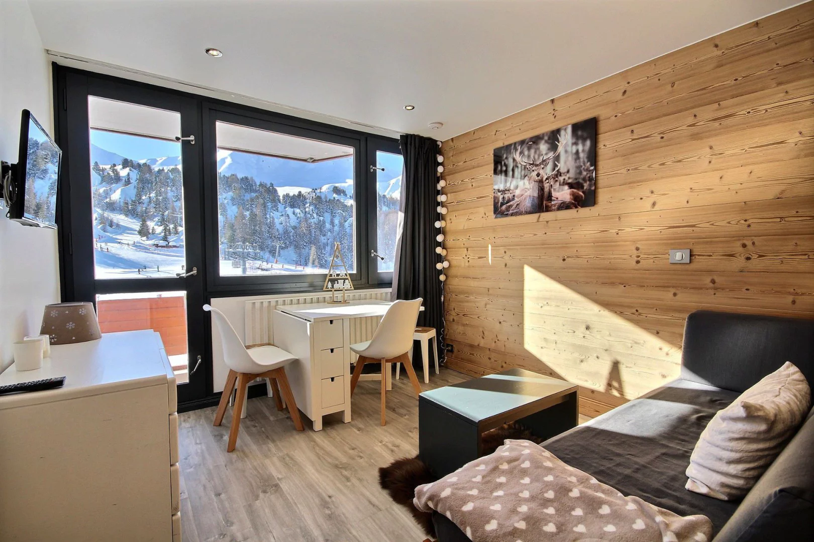 Très beau studio-cabine pour 3/4 personnes refait à neuf, orienté sud (très belle vue pistes) avec balcon, 7ème étage