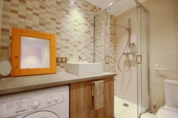 Salle de bains avec cabine de douche et WC