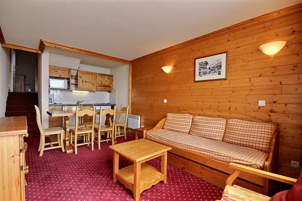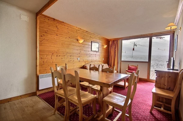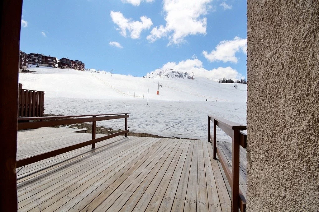 Appartement en triplex pour 7 personnes, orienté sud, grande terrasse sur les pistes. Rez-de-pistes (avec accès par 1er étage)