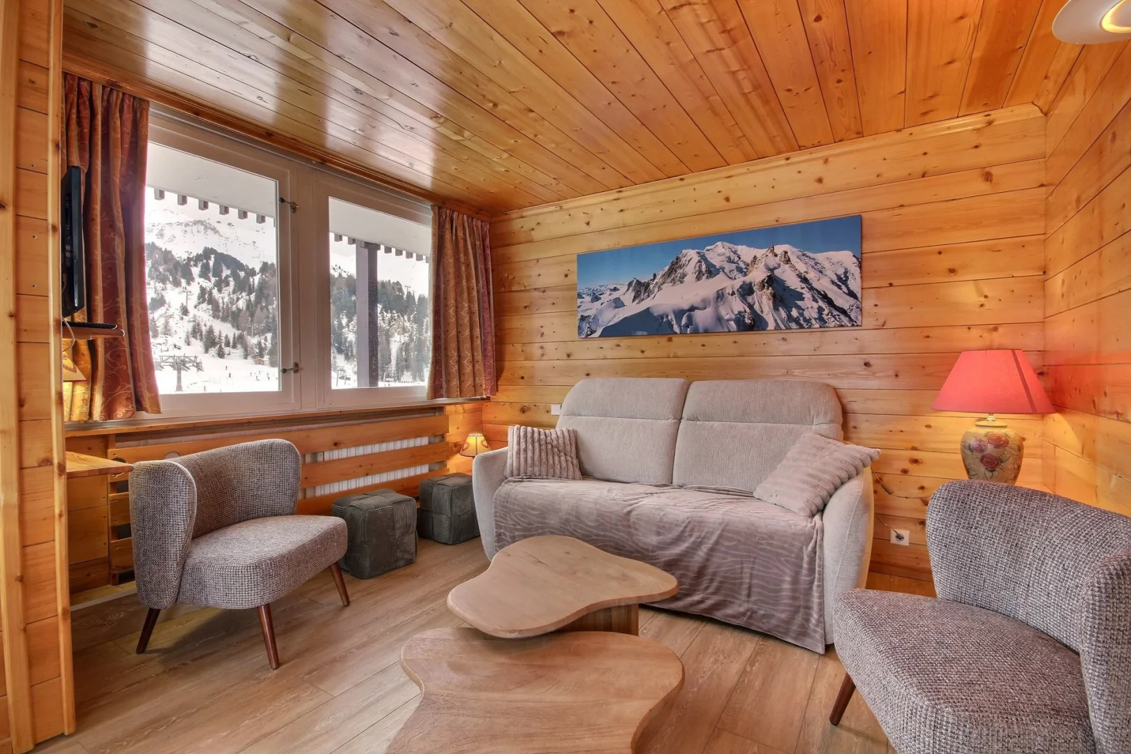 Spacieux appartement 3/4 pièces pour 6 personnes, accessible PMR (partiellement) orienté sud avec grand balcon, magnifique vue sur les pistes et le Mont-Blanc, 7ème étage