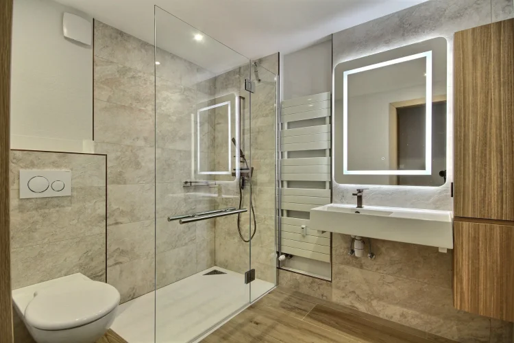 Salle de bains équipée PMR : douche à l'italienne et WC