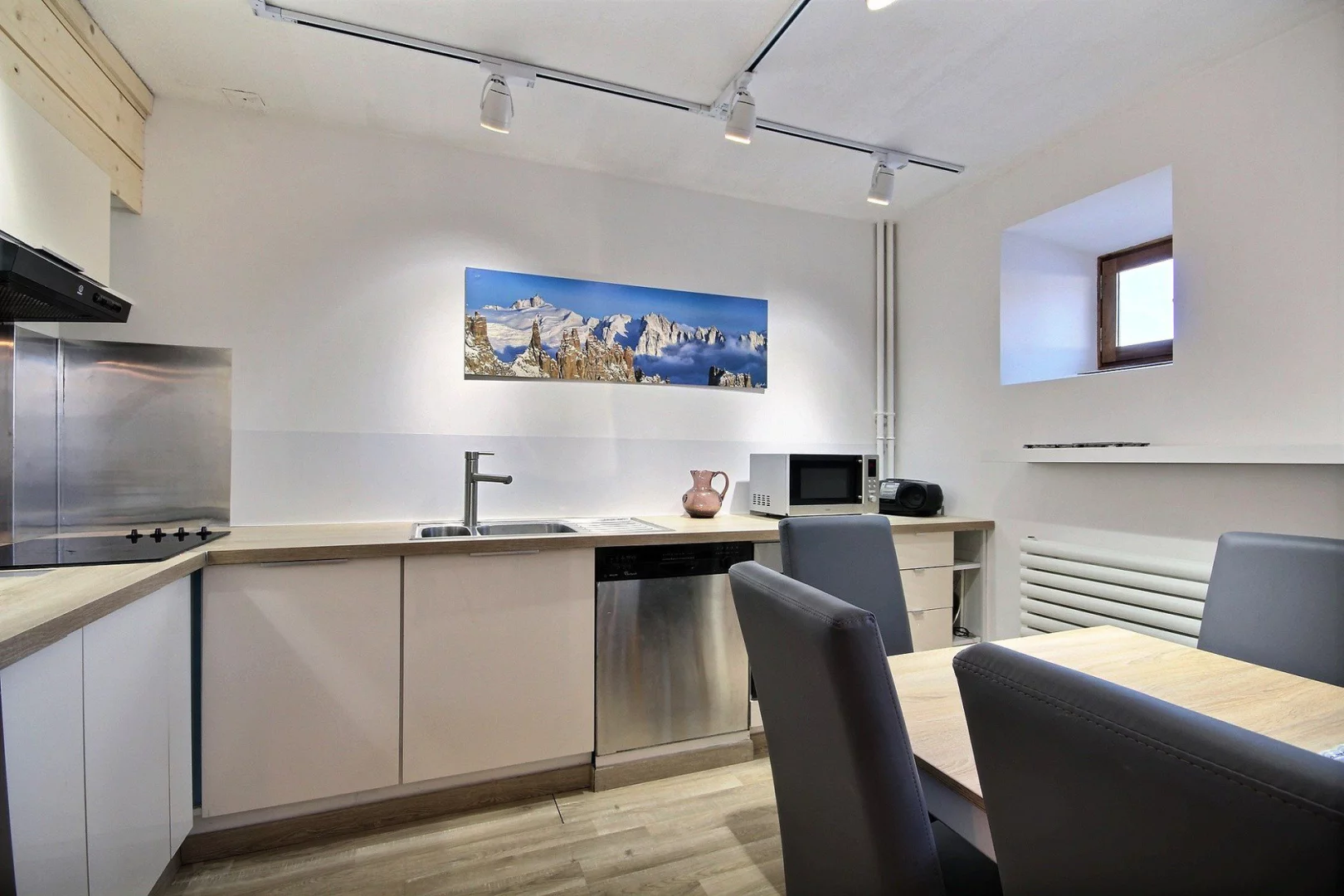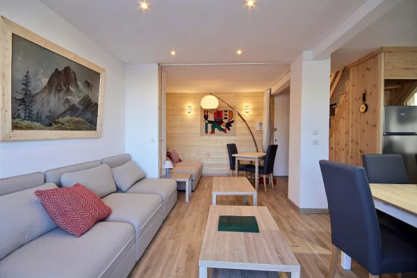 Appartement en duplex pour 9 personnes, orienté au nord avec balcon (très belle vue sur le Mont-Blanc), 1er étage