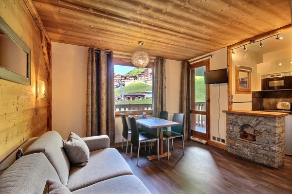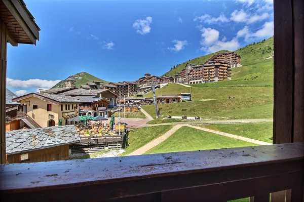 Très joli studio divisible, équipé pour 4 personnes, orienté nord avec balcon, vue sur la station, 1er étage (accès de plain pied par le front de neige de Belle Plagne)