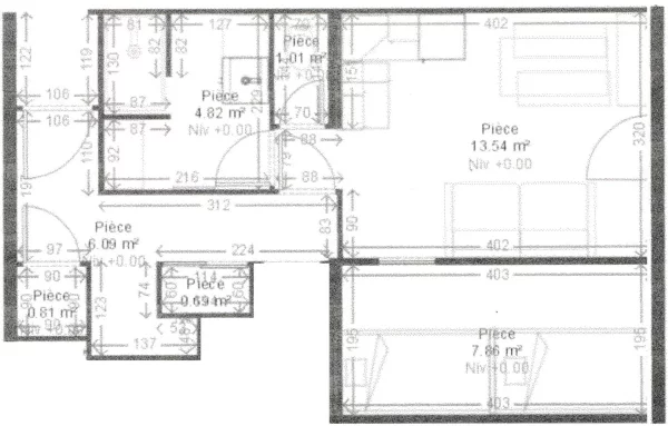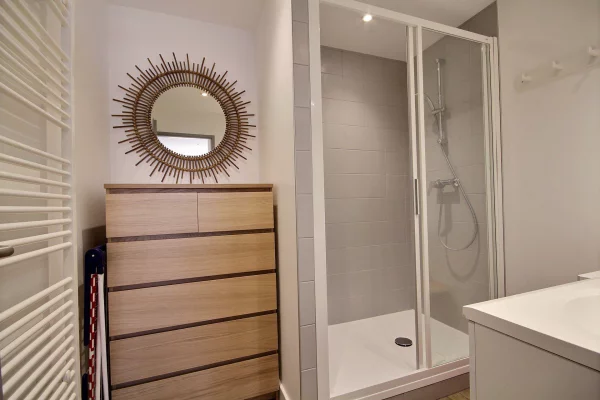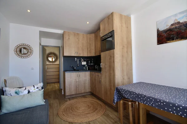 Appartement 2 pièces 4 personnes, orienté est avec sortie directe sur l'extérieur et terrasse, rez-de-chaussée (niveau -1 par rapport à l'entrée de l'immeuble), sans ascenseur