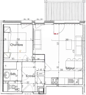 Séjour ouvrant sur le balcon : 1 canapé-lit pour 2 personnes (160 cm)