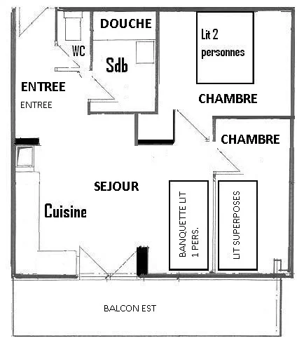 Très bel appartement 3 pièces pour 5 personnes, orienté est (jolie vue sur la station) avec balcon, 3ème étage