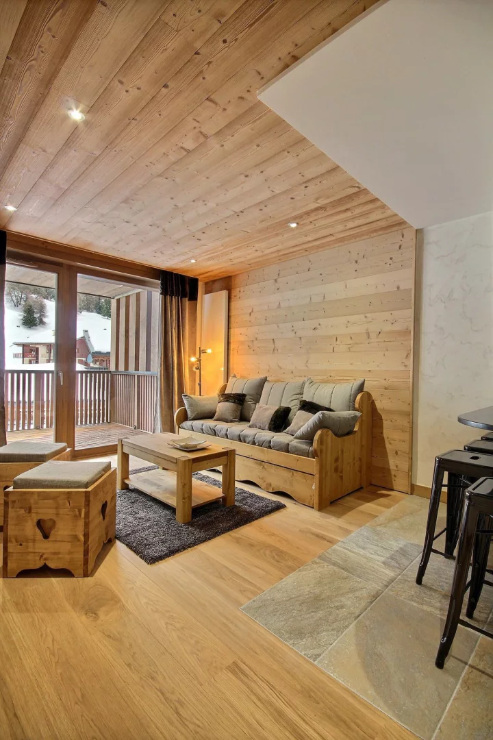 Magnifique appartement neuf, équipé pour 4 à 6 personnes, orienté au sud-ouest avec une grande terrasse, très belle vue sur les pistes, 2ème étage