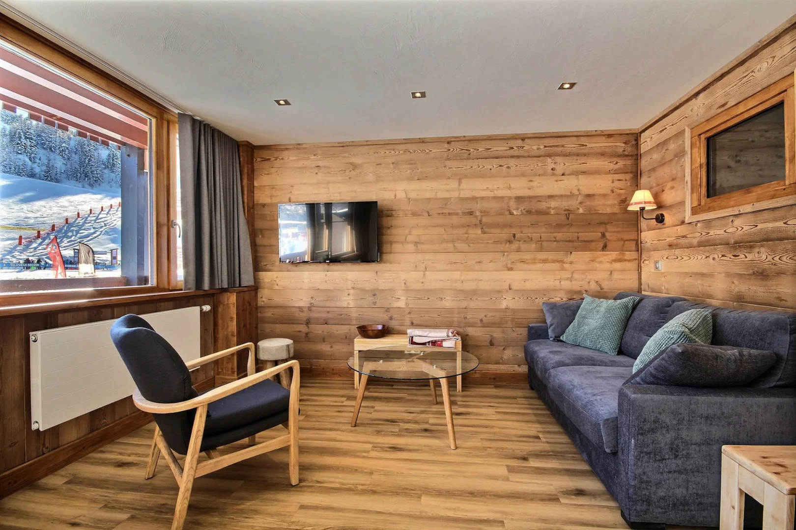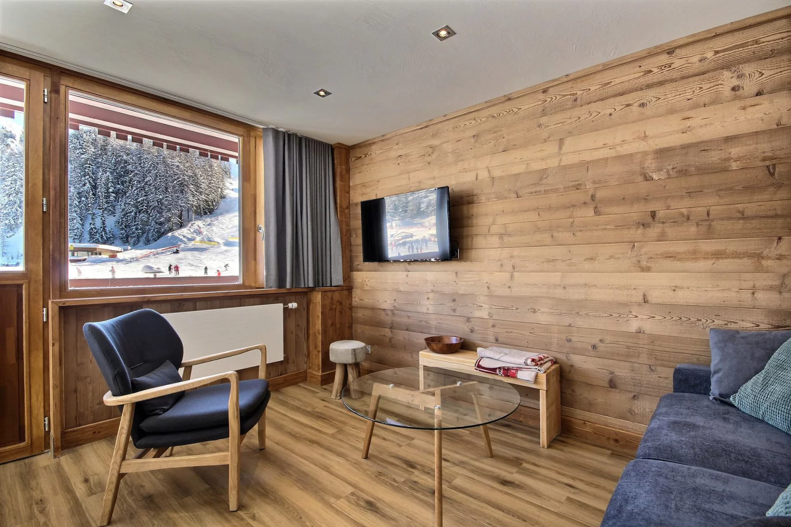 Appartement 3 pièces + cabine pour 6 personnes, orienté au sud avec balcon, magnifique vue sur le front de neige de Plagne centre, 2ème étage (avec accès direct au parking)