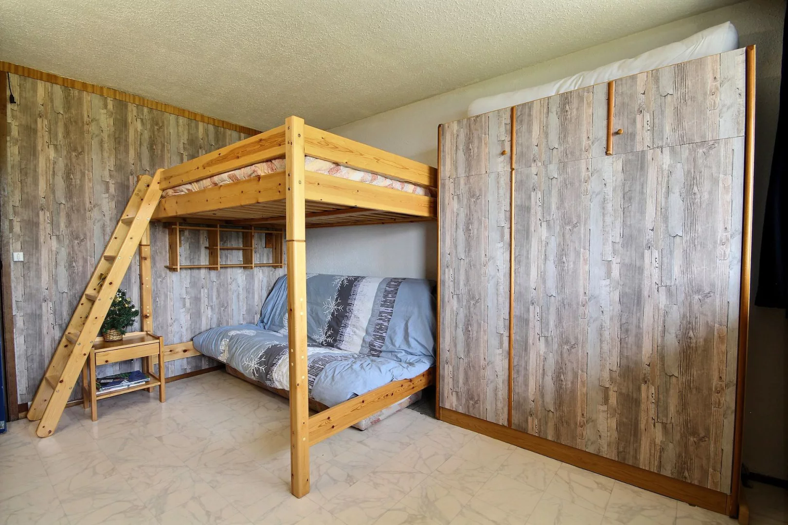 Chambre : 1 lit 2 personnes rabattable (140cm) + 1 lit de 2 personne (140cm) en hauteur