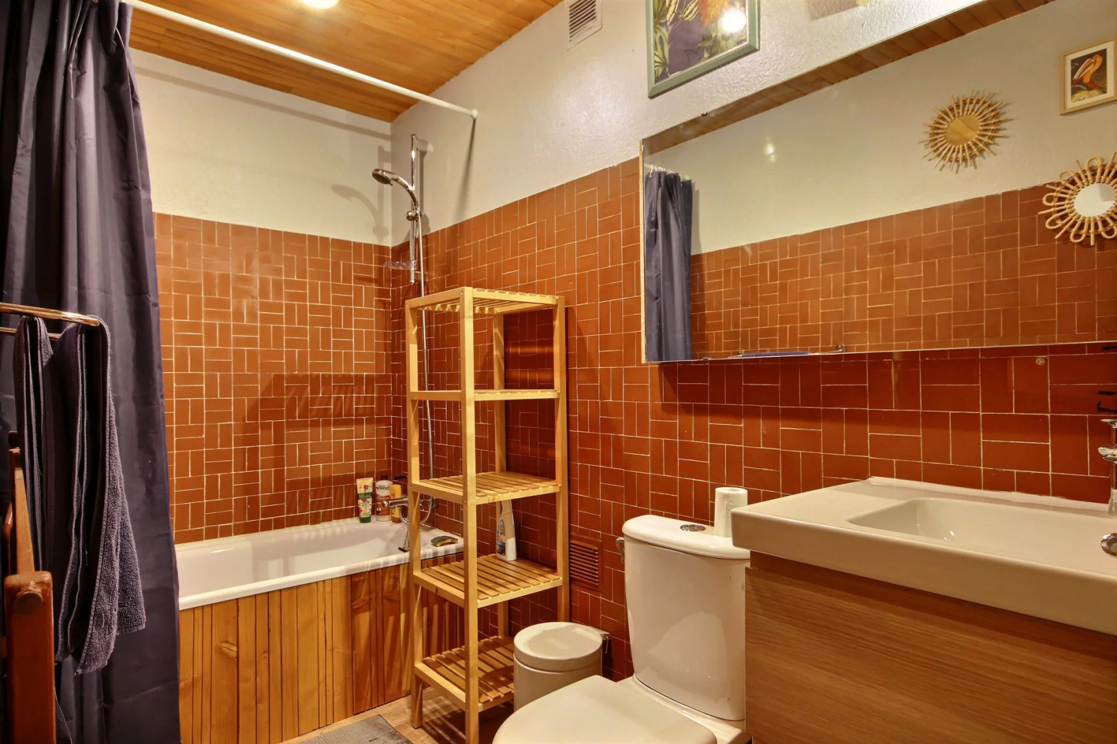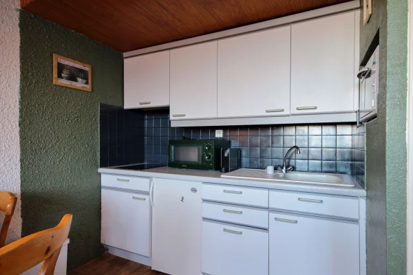 Grand studio équipé pour 3 personnes, orienté nord sans balcon, très belle vue sur le Mont-Blanc, sans ascenseur (entrée séparée de l'entrée principale du Jannu), accès par escalier, 1er étage