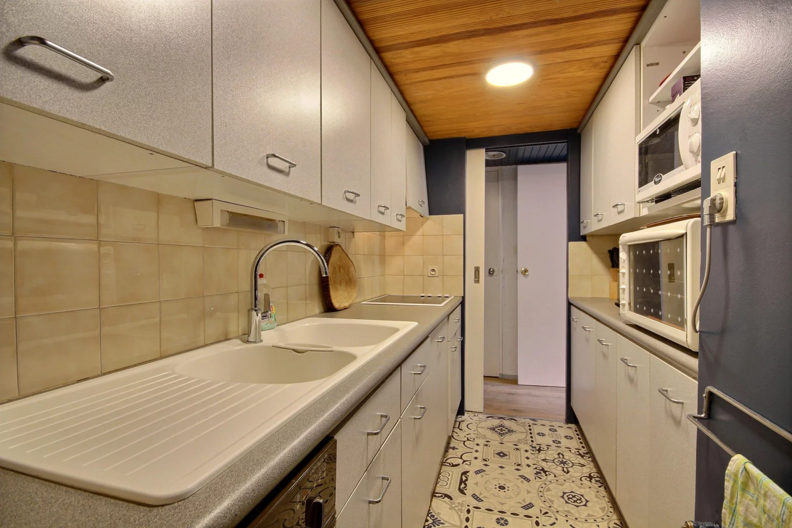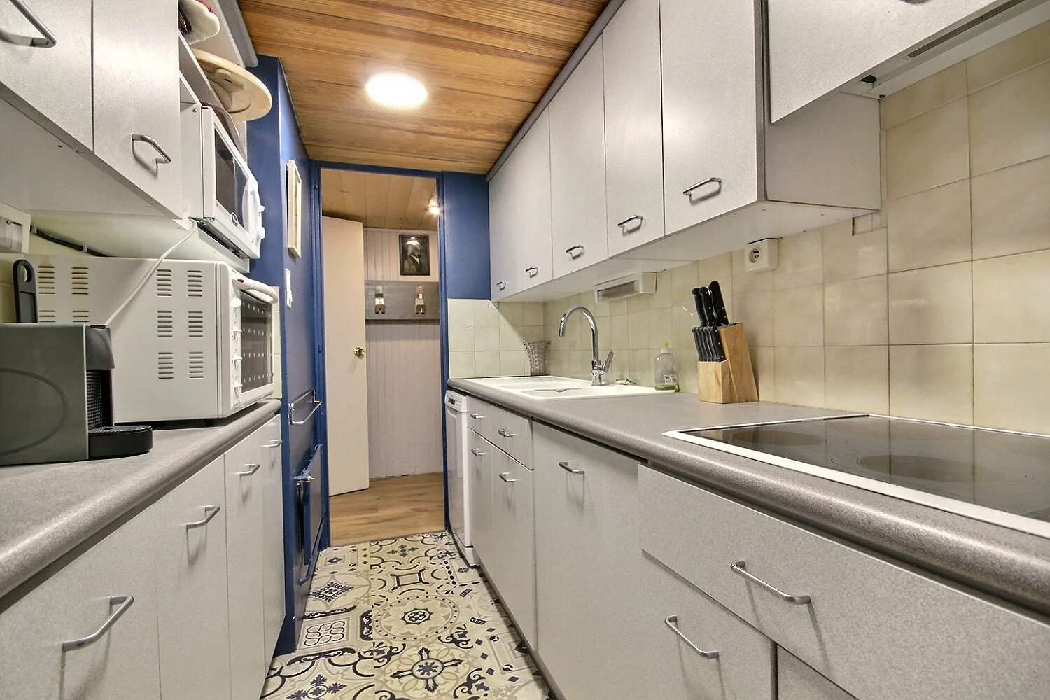Cuisine séparée : plaques vitrocéramiques, four, réfrigérateur, lave-vaisselle, machine à café Nespresso, micro-ondes