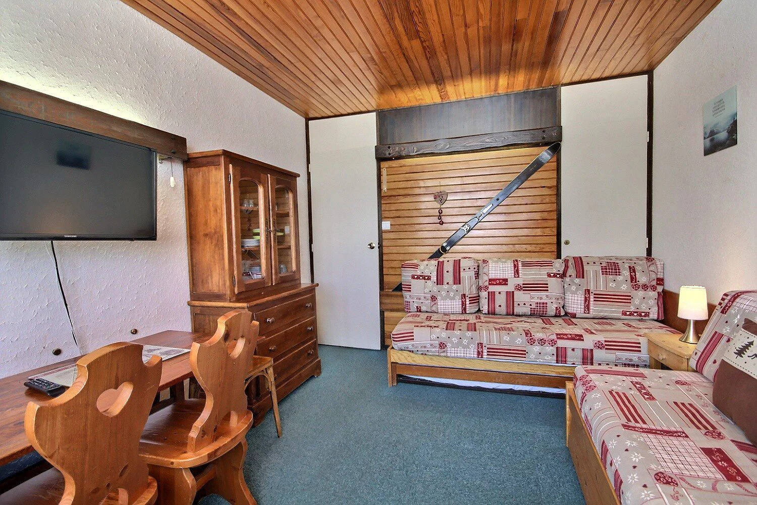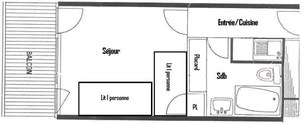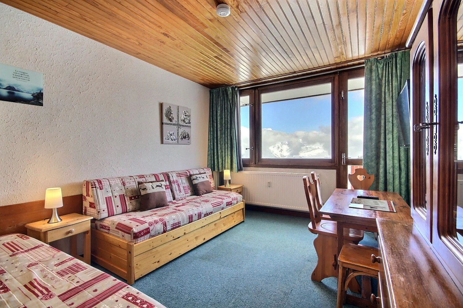 Séjour ouvrant sur le balcon : 2 banquettes-lits d'1 personne, 1 lit gigogne