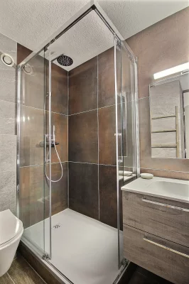 Salle de bains avec grande cabine de douche et WC