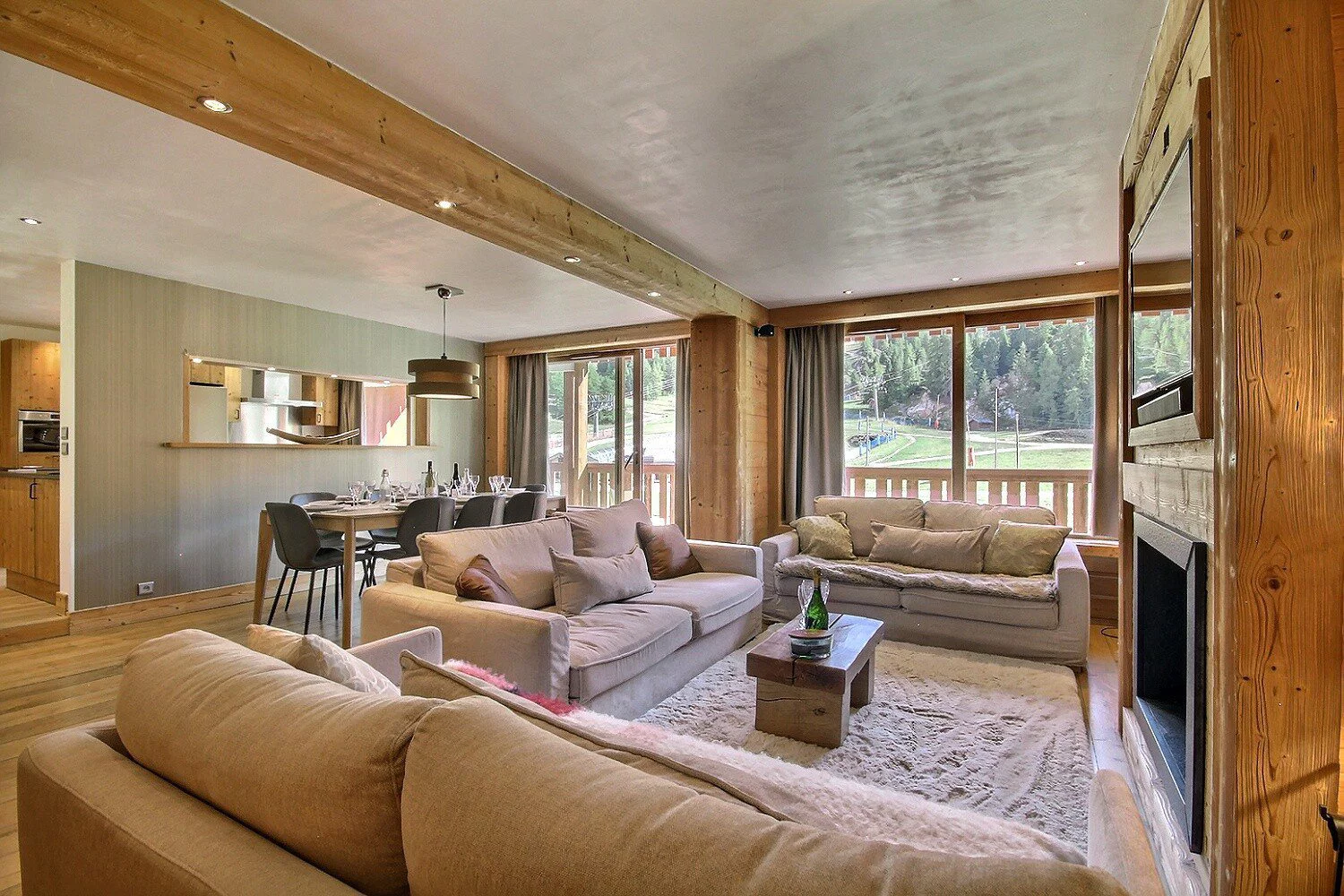 Magnifique et luxueux appartement pour 8 personnes, avec accès direct au front de neige, orienté sud (magnifique vue sur les pistes) 3ème étage avec un très grand balcon longeant la totalité de l'appartement