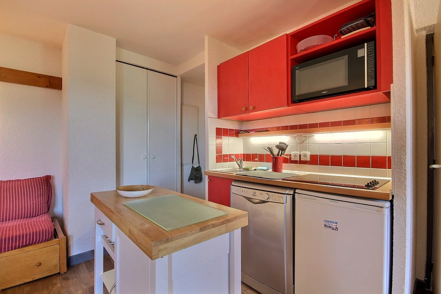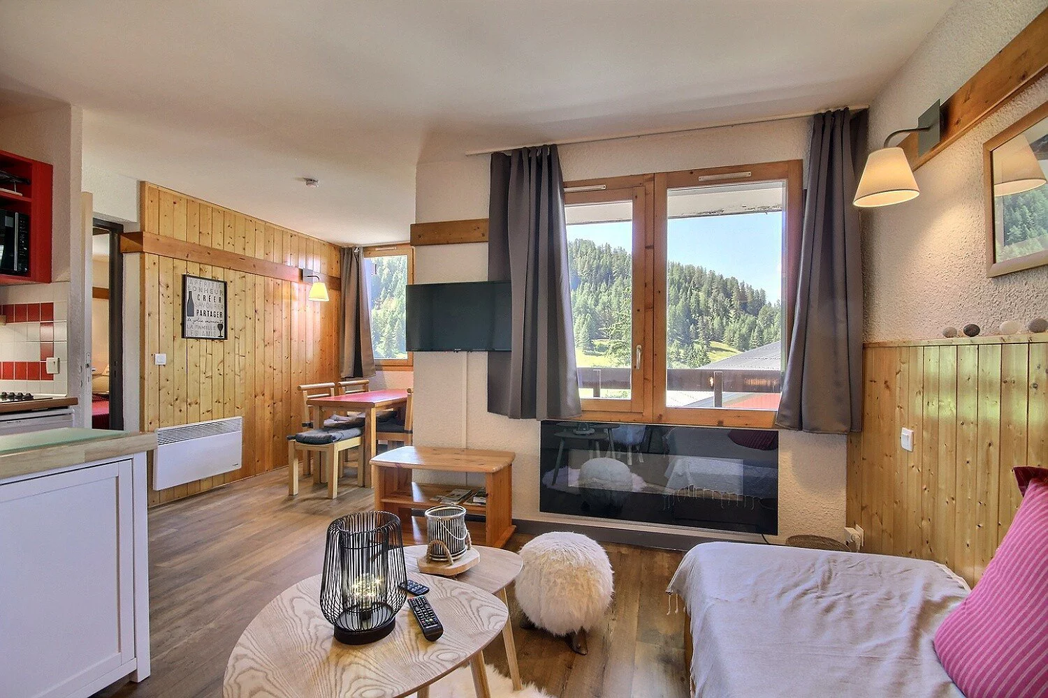 Joli appartement 2 pièces équipé pour 4/5 personnes, orienté ouest avec balcon, jolie vue sur la station et les pistes, 2ème étage avec balcon (sans ascenseur)