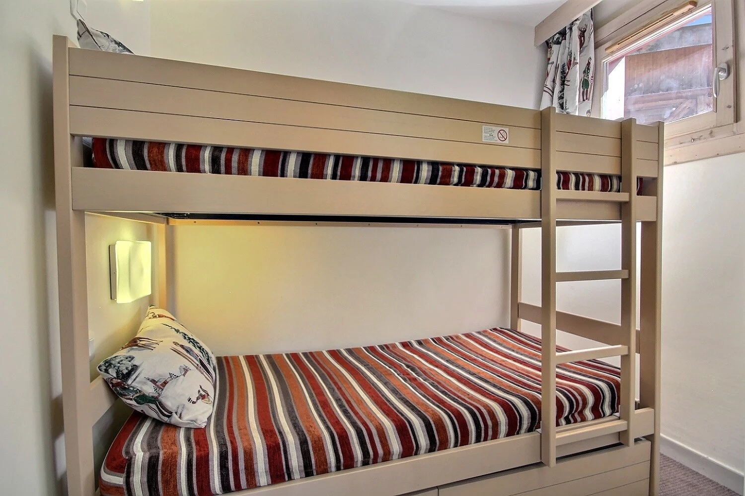 Chambre-cabine spacieuse (fermée et avec fenêtre) : 2 lits superposés d'1 personne (80 cm)