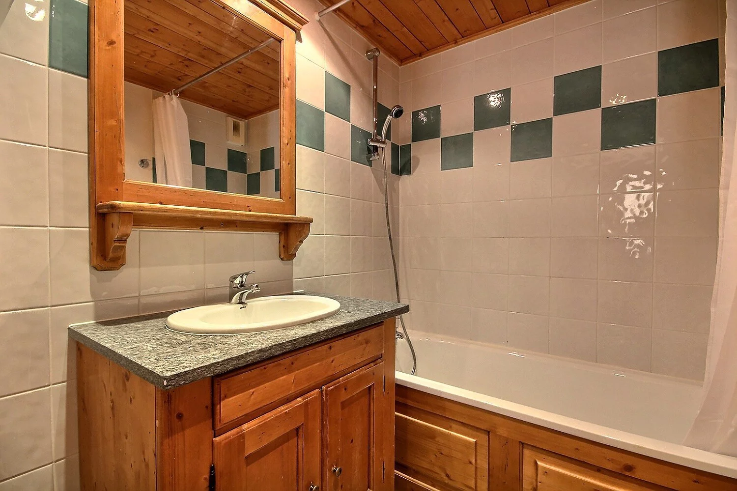 Chambre : 1 lit de 2 personnes (160 x 200 cm), salle de bains avec baignoire