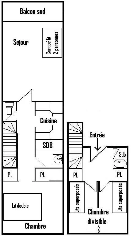 Chambre : 2 lits superposés