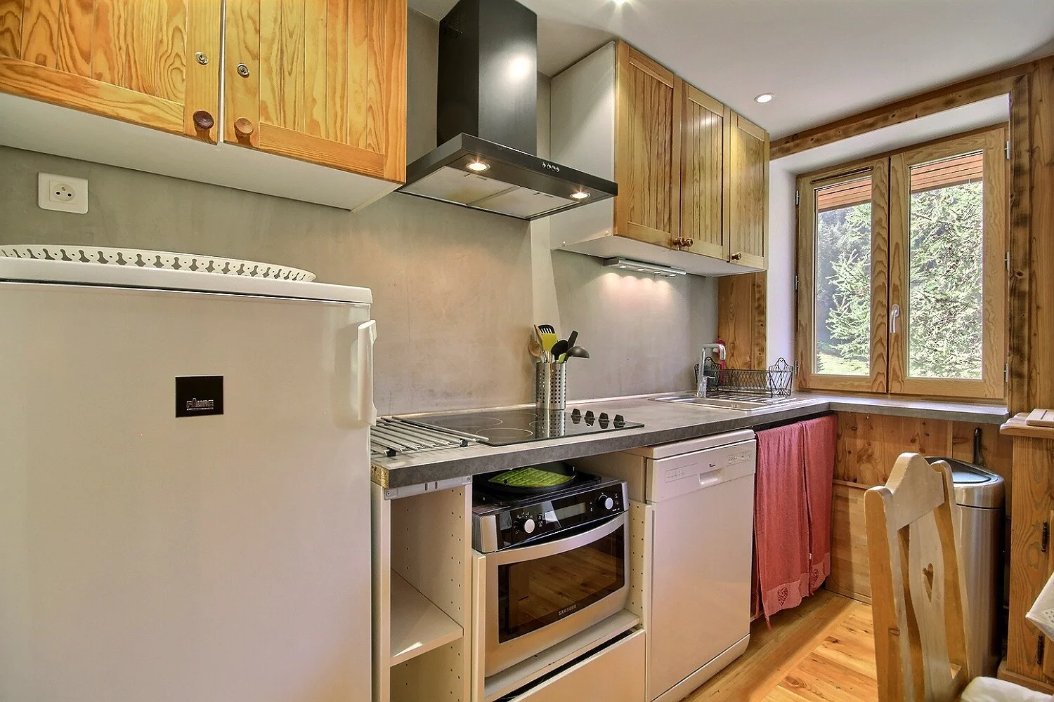 Coin cuisine : plaques vitrocéramiques, réfrigérateur, lave-vaisselle, four