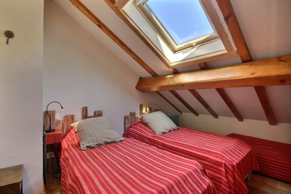 Chambre : 2 lits d'1 personne (80cm) pouvant former un lit double (160 cm)