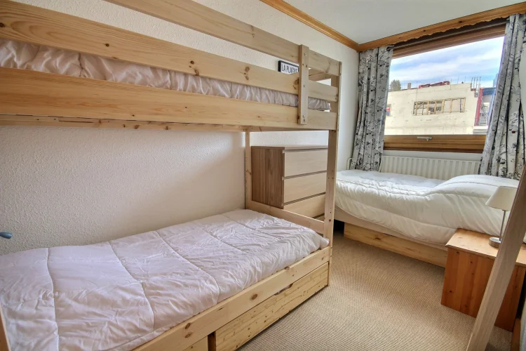 Chambre : 1 lit de 2 personnes (140 cm), 2 lits superposés d'1 personne (80 cm)