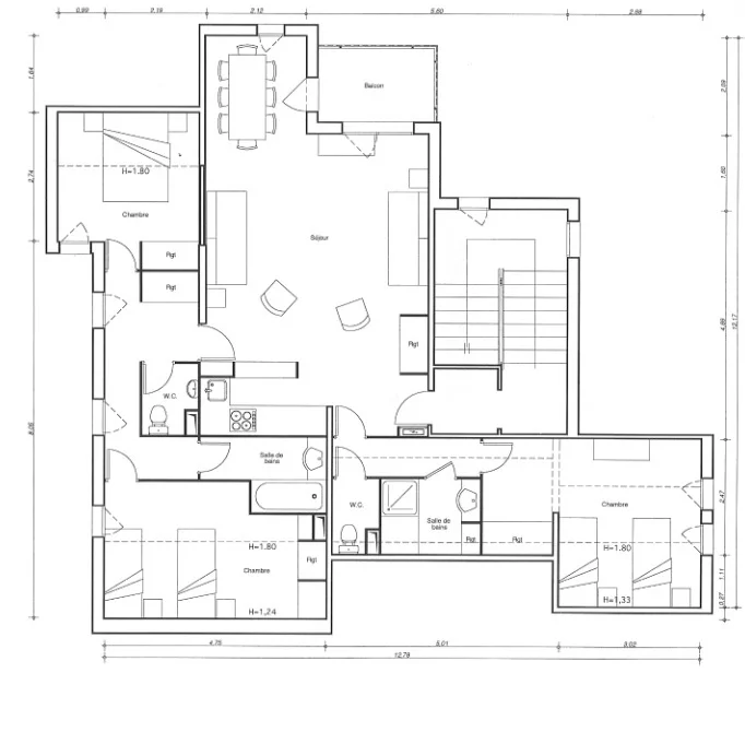 Grand appartement 4 pièces pour 8 personnes, orienté est avec balcon, 1er étage (sans ascenseur)