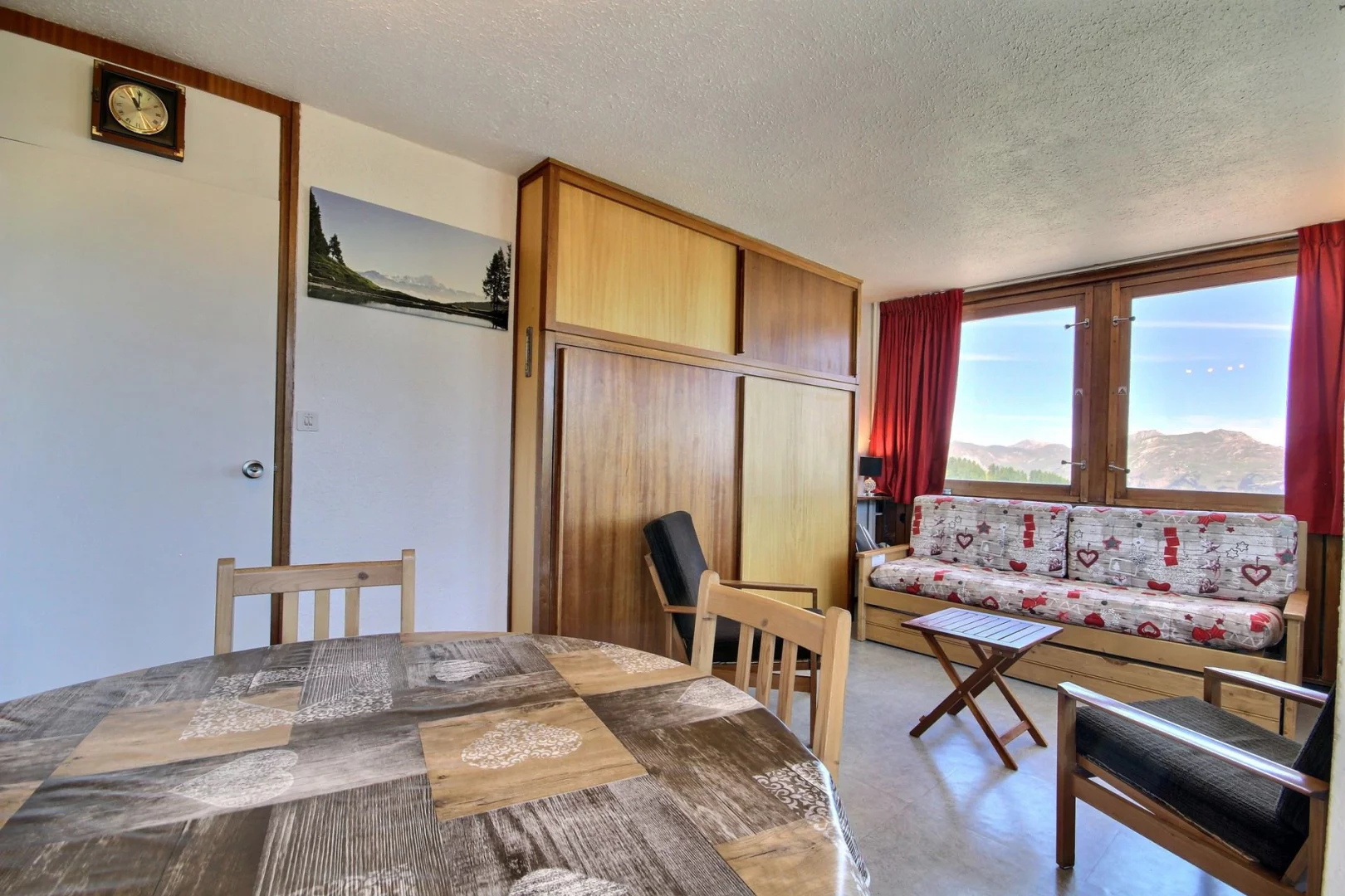 Séjour ouvrant sur le balcon : 2 lits gigognes d'1 personnes pouvant former un lit double (160 cm)