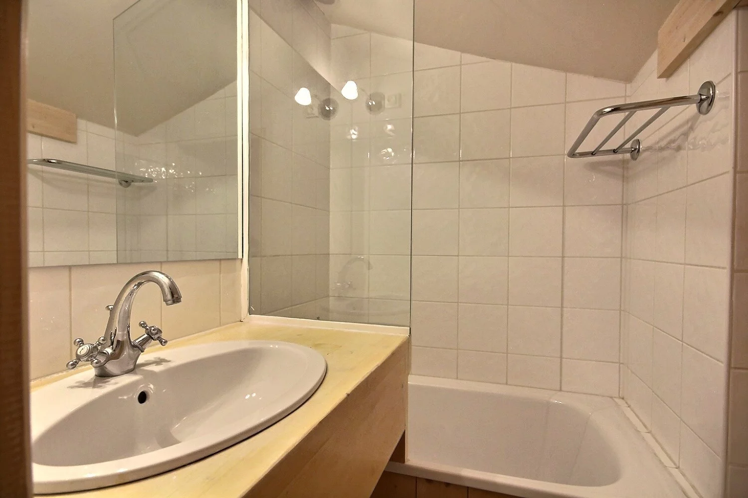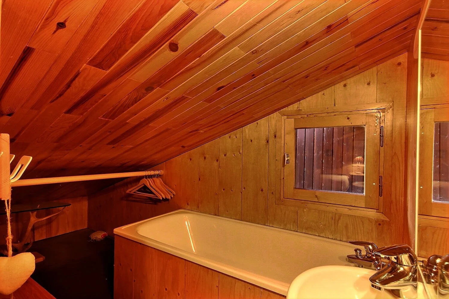 - Chambre en sous-pente : 2 lits d'1 personne (80 cm), salle de bains avec baignoire