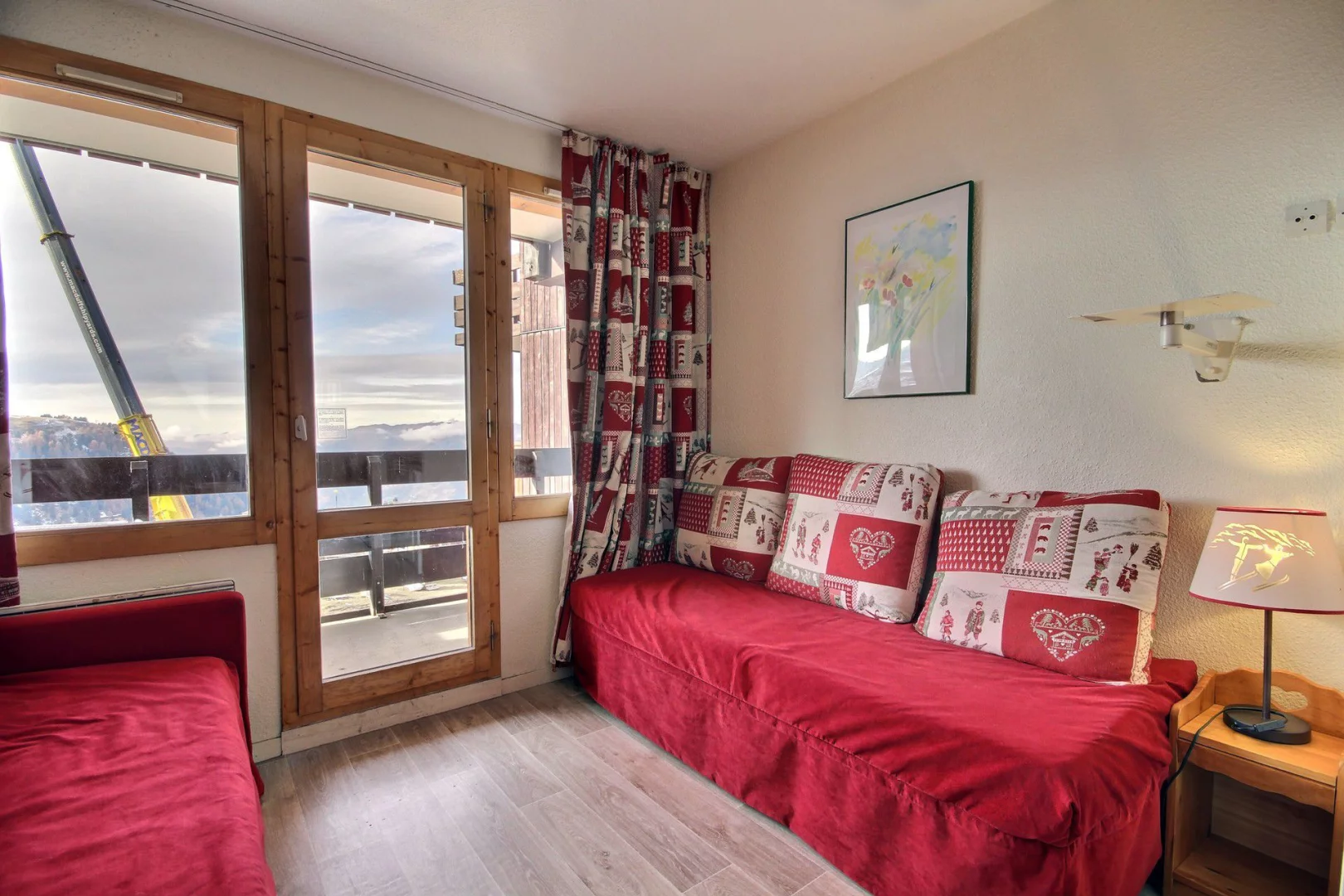 Studio cabine 4 personnes, orienté sud-ouest avec balcon, magnifique vue, 4ème étage et 3ème étage par rapport à la sortie côté pistes