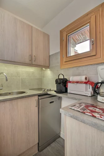 Cuisine : plaques vitrocéramiques, four micro-ondes, réfrigérateur, lave-vaisselle