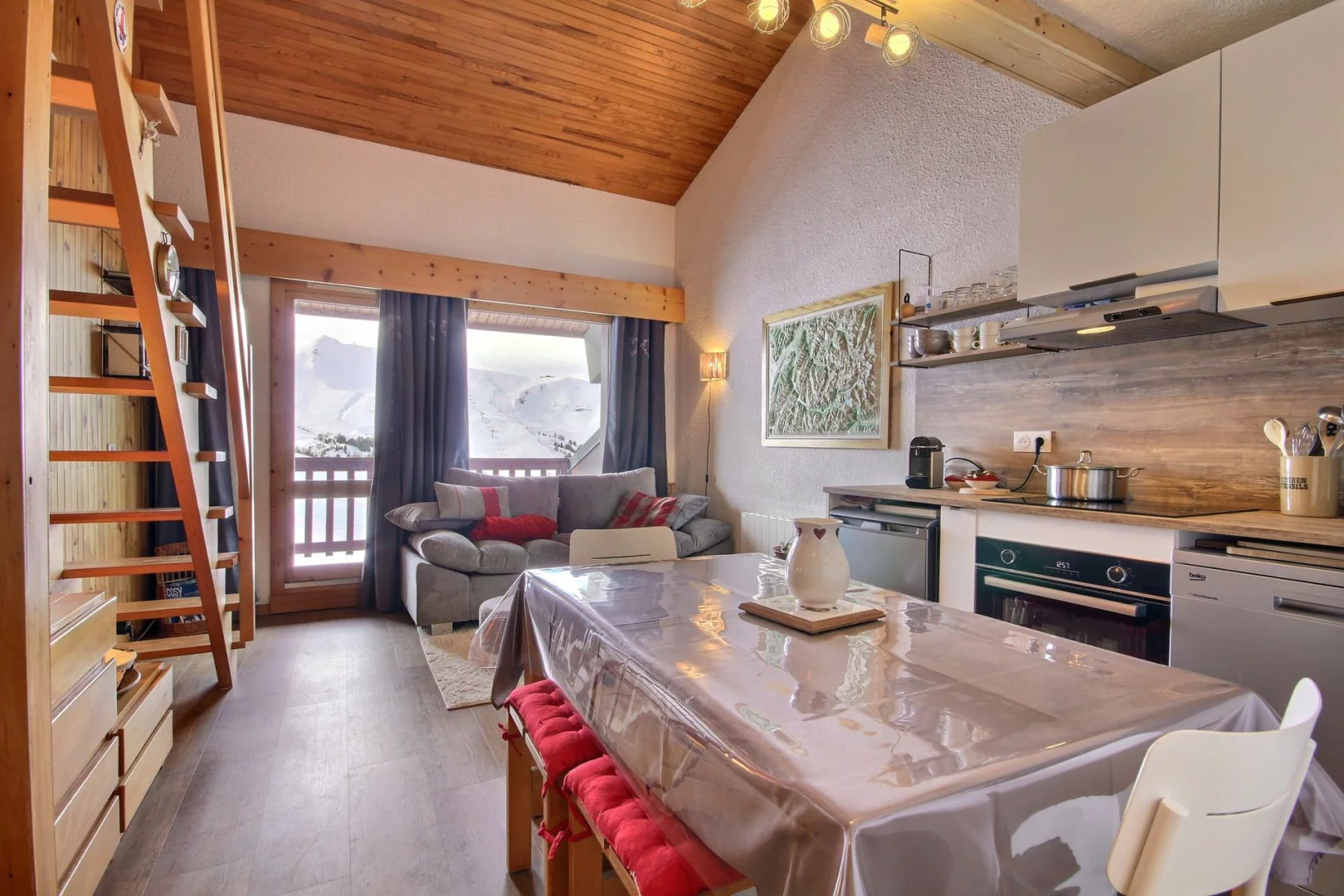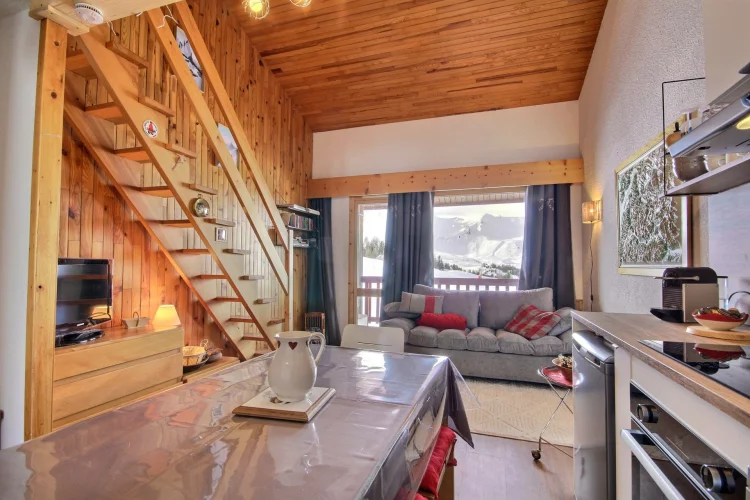 Très joli appartement en duplex, équipé pour 5 personnes, orienté sud-ouest avec balcon, superbe vue sur les pistes.