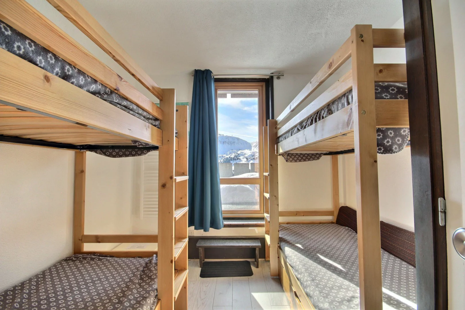 Chambre ouvrant sur la terrasse : 2 x 2 lits superposés d'1 personnes
